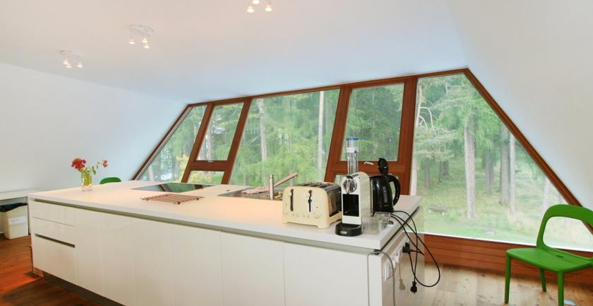 • Dachgeschoß:  Wohnraumloft mit großem Essbereich, Küche, Kamin und Dachterrasse.