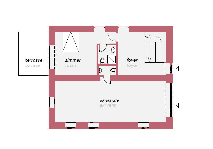 • ein Bergführerbüro/Sportshop befindet sich im Erdgeschoß.