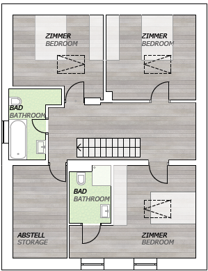- Dachgeschoß: Drei Doppelzimmer. Kinderbett.