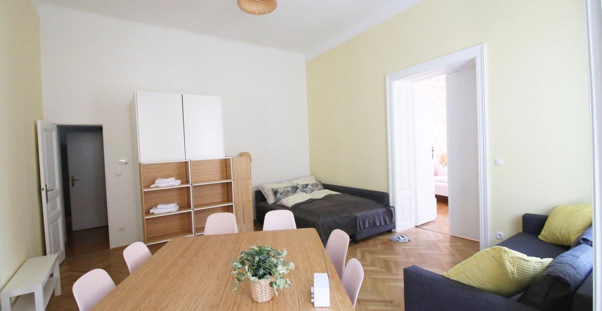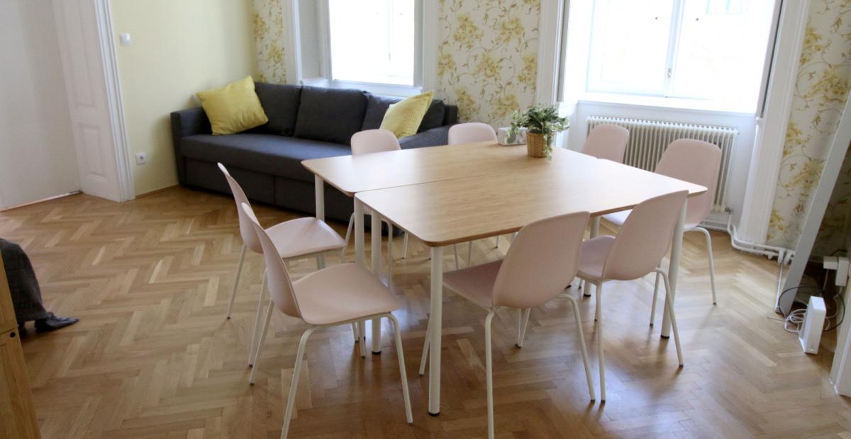 Flowery living next to Rathaus, Parlament and Hofburg in the very city center of Vienna. 105 m2 living space. Two luxurious double bedrooms, with single bed and bunk bed in addition. Cosy livingroom with two sofas or day beds and huge dining table. Kitchen with small Viennese Kaffeehaus table. Modern bathroom and seperate toilet. Perfect for small groups and families. Metro just around the corner!