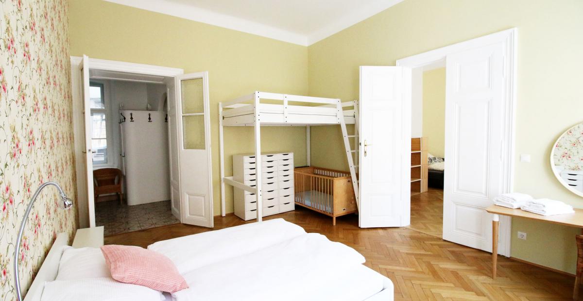 - Zwei Schlafzimmer mit 3,80m Raumhöhe: zwei Doppelbetten und großes Hochbett!