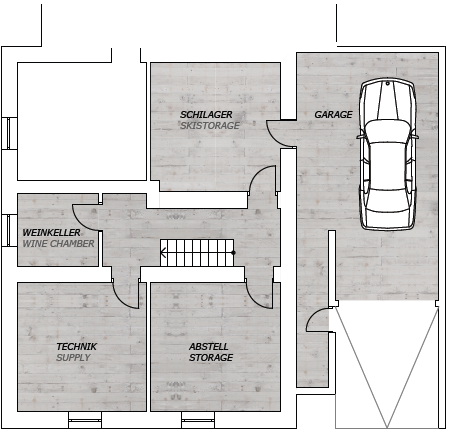 • Keller: Großer Schiraum mit Trockner und Garderobe. Weinkeller.