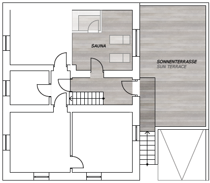 • Erdgeschoß: Sauna mit Liegebereich. Große Sonnenterrasse mit Grill.
